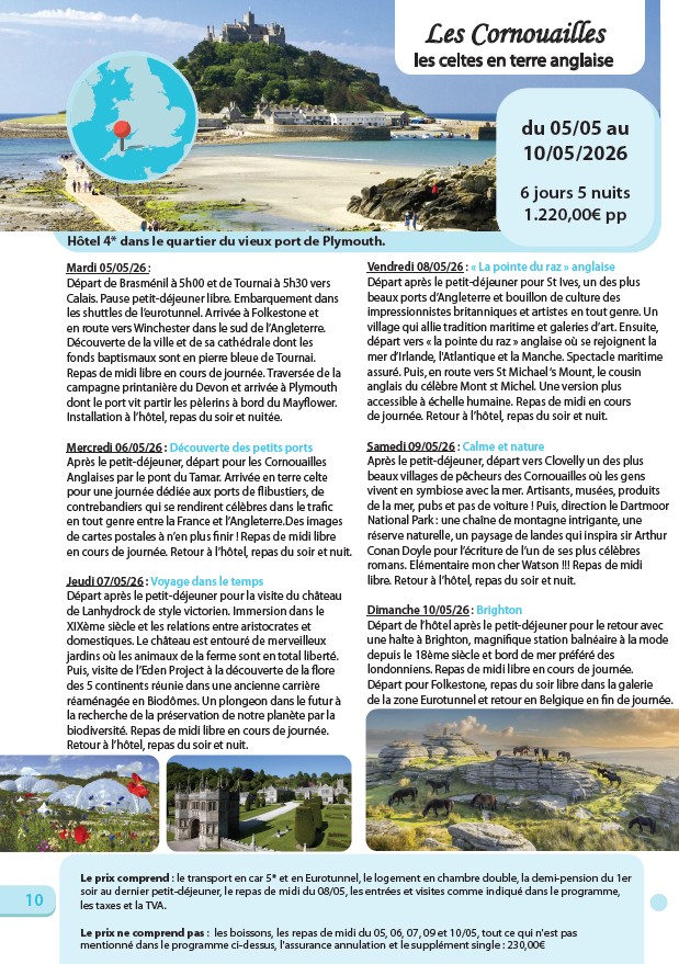 Programme détaillé : https://www.voyages-suncars.be/wp-content/uploads/2025/11/10.Cornouailles.jpg