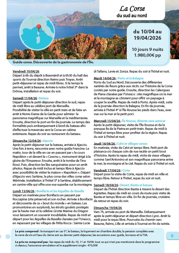 Programme détaillé : https://www.voyages-suncars.be/wp-content/uploads/2025/11/9.Corse_.jpg